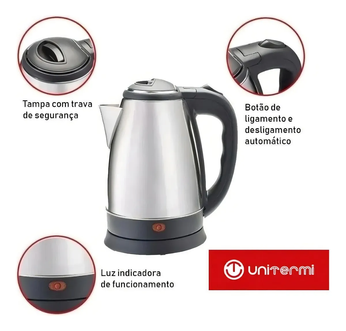 A Chaleira Elétrica Atacama de 1.8L é perfeita para quem busca agilidade no preparo de bebidas quentes e alimentos. Com aquecimento rápido e desligamento automático, ela garante segurança e eficiência. O design moderno une funcionalidade e estilo, sendo ideal para o uso diário. A capacidade de 1.8 litros é suficiente para preparar chás, cafés e outras bebidas para toda a família. Além disso, seu sistema bivolt e a base removível tornam o manuseio e o transporte ainda mais práticos.