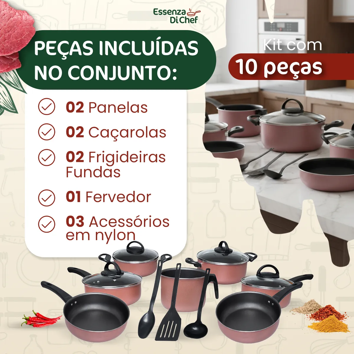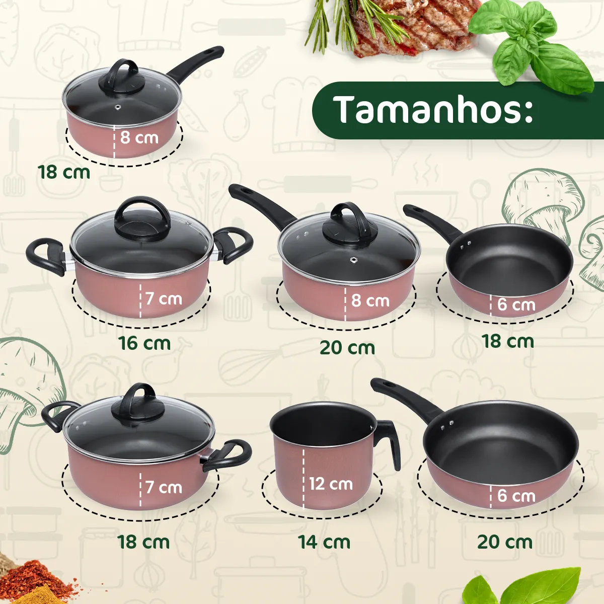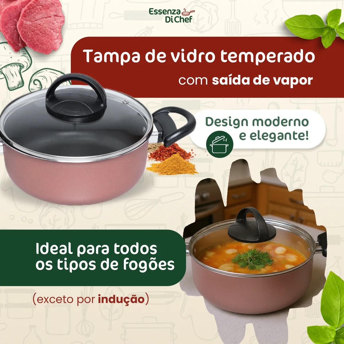 Leve mais praticidade e estilo à sua cozinha com o Conjunto Imperial 13 Peças. Feito em alumínio com revestimento antiaderente Teflon, garante cozimento rápido, fácil limpeza e maior durabilidade. Os cabos em baquelite antitérmico oferecem segurança, e as tampas de vidro temperado permitem acompanhar o preparo sem perder calor.
