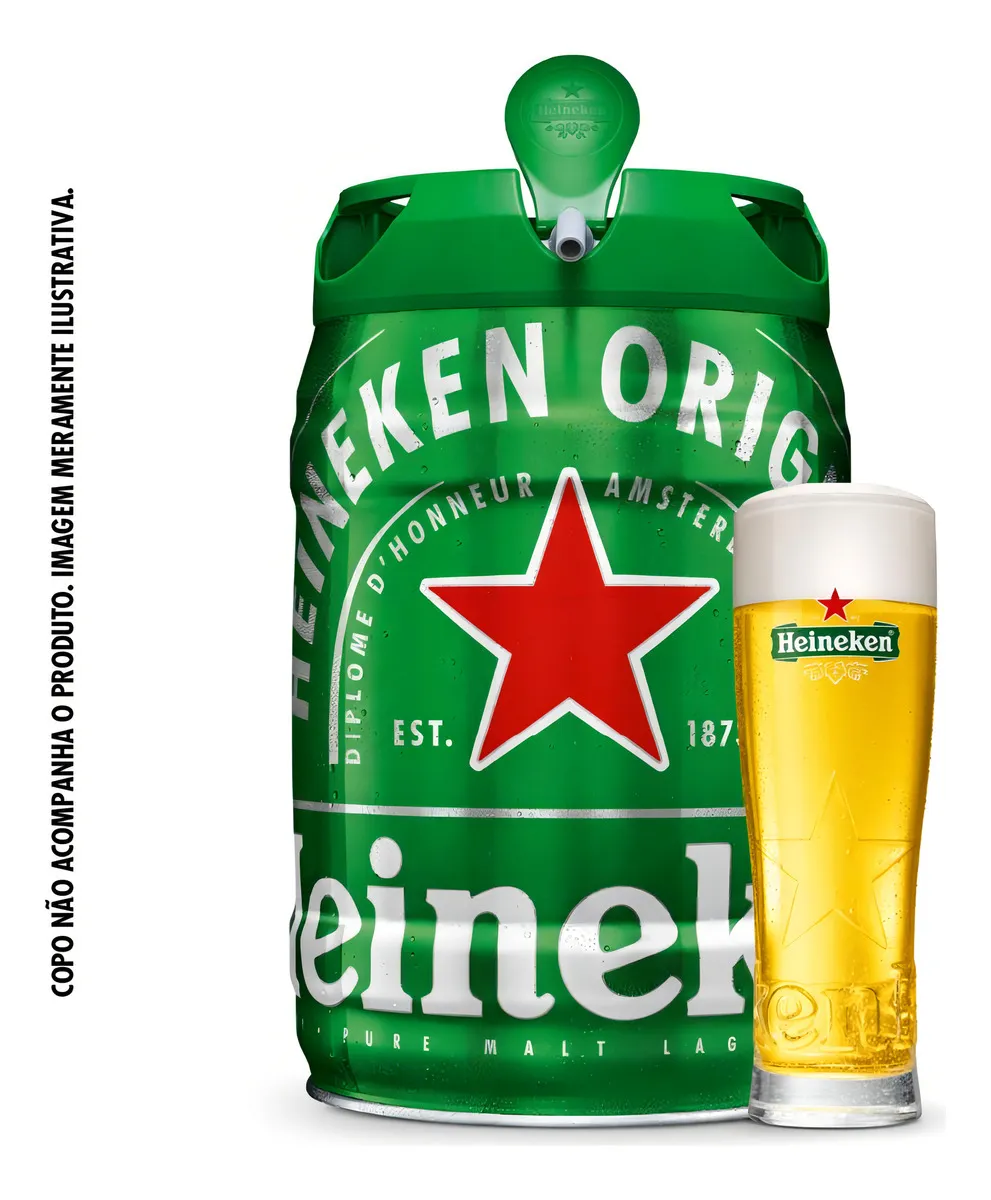 O barril Heineken proporciona uma experiência única para você e seus amigos. Não pode ir a um bar? Então leve o bar até você. O barril Heineken conta com 5 litros da mais icônica cerveja Puro Malte. Heineken é uma cerveja lager Puro Malte, refrescante e de cor amarelo-dourado, produzida com ingredientes 100% naturais: água, malte e lúpulo. Durante o processo de fermentação da Heineken, a exclusiva Levedura A é responsável pelo sabor característico e bem equilibrado, com notas frutadas sutis. A cerveja é fabricada em tanques horizontais para mais sabor e consistência. É por isso que nenhuma outra cerveja tem o gosto de Heineken. Preparado para servir a cerveja perfeita? Seja em uma festa, churrasco ou para assistir um jogo de futebol, você pode servir seus convidados o copo perfeito de cerveja gelada!