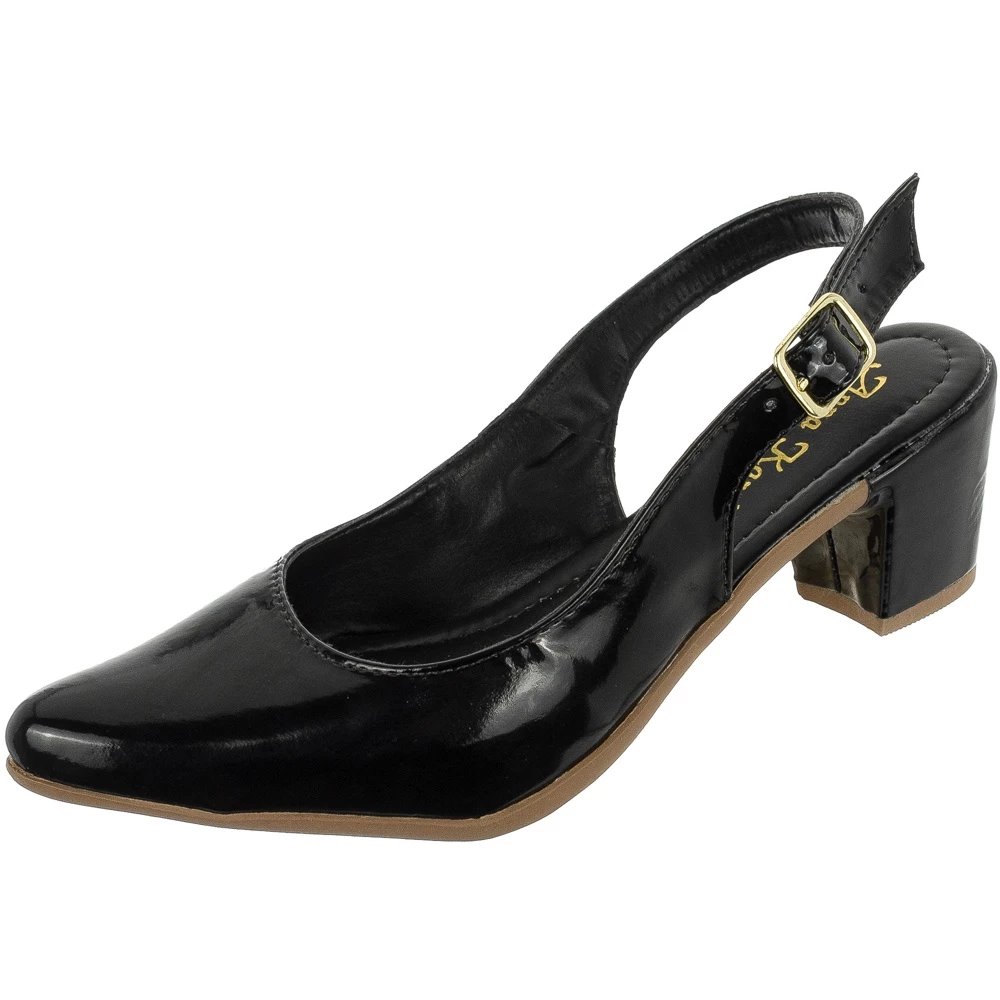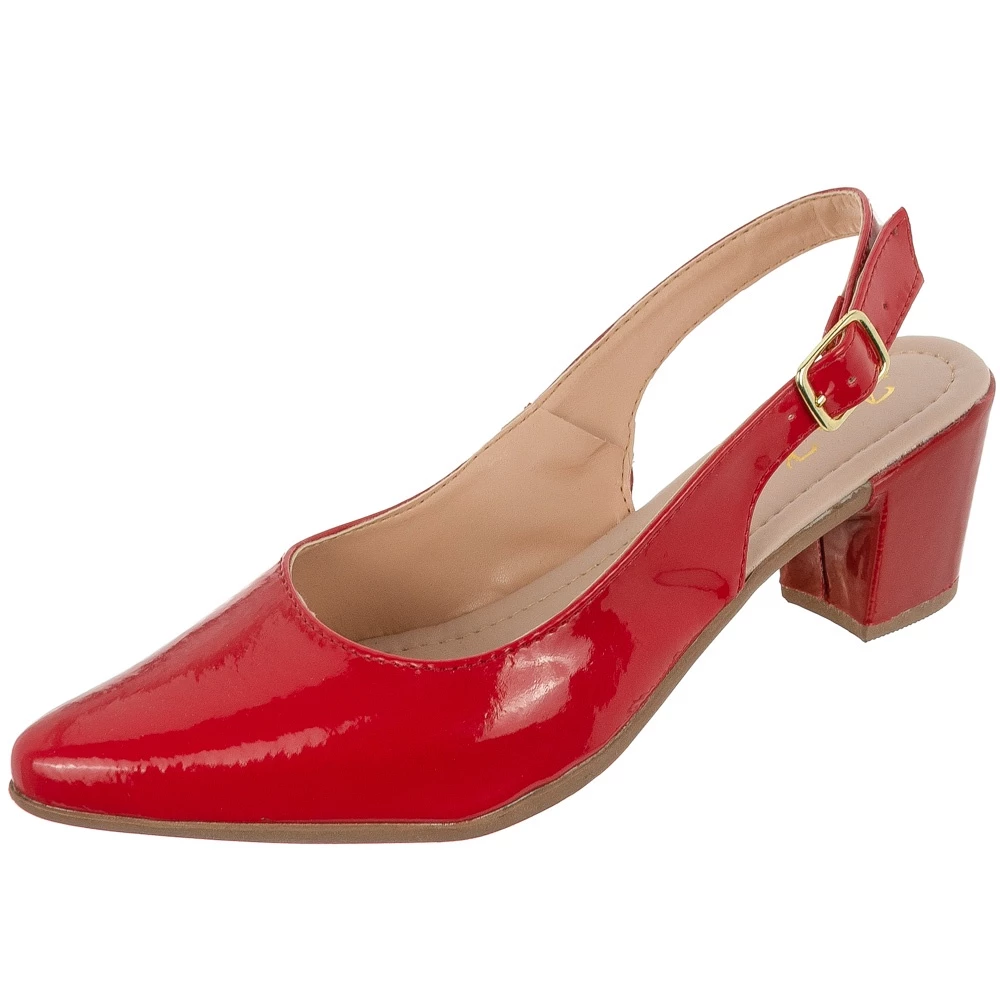 Sapato Scarpin Feminino Delta Bico Fino Traseiro Aberta Salto verniz