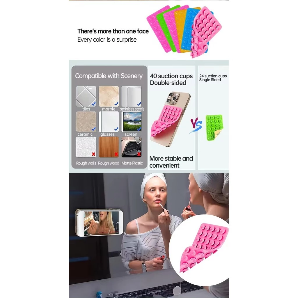 Sucção poderosa - A montagem do smartphone de ventosas de Silicone usa 24 ventosas fortes para fornecer sucção mais forte e confiável, garantindo que seu telefone permaneça no lugar sem cair ou tremer.