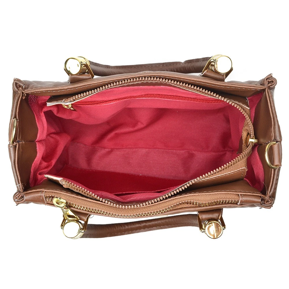 Feita em material couro sintético cedro, com bordado na parte exterior